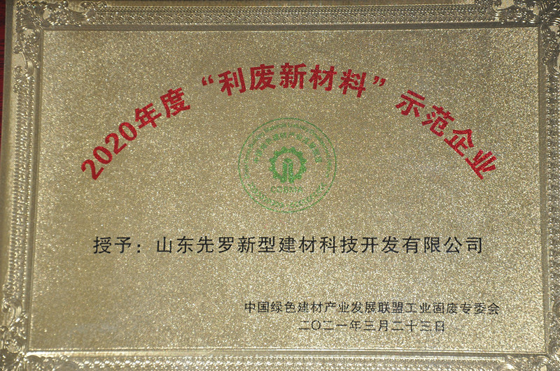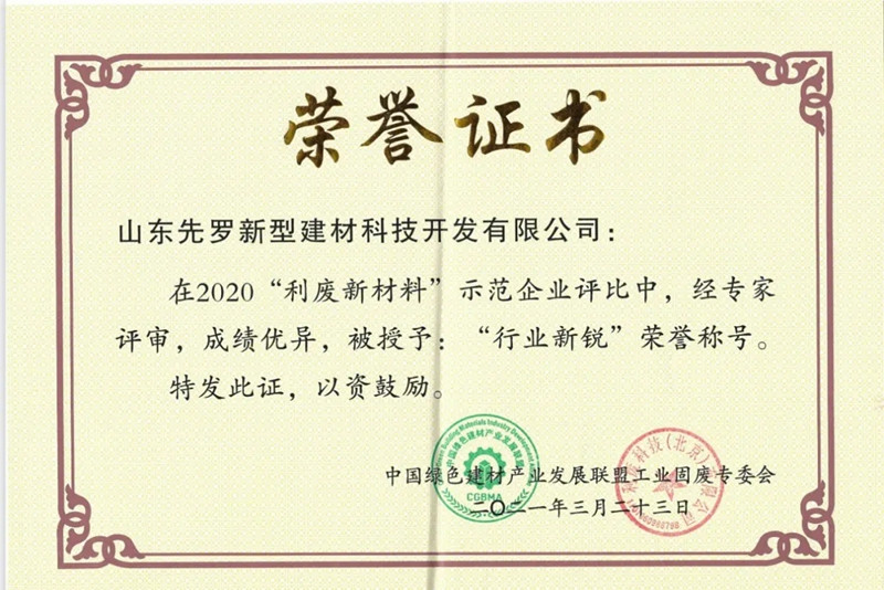 激勵(lì)行業(yè)優(yōu)秀企業(yè)創(chuàng)先爭(zhēng)優(yōu),隆重授予山東先羅“2020年度利廢新材料示范企業(yè)”榮譽(yù)稱號(hào)、授予山東先羅“行業(yè)新銳”